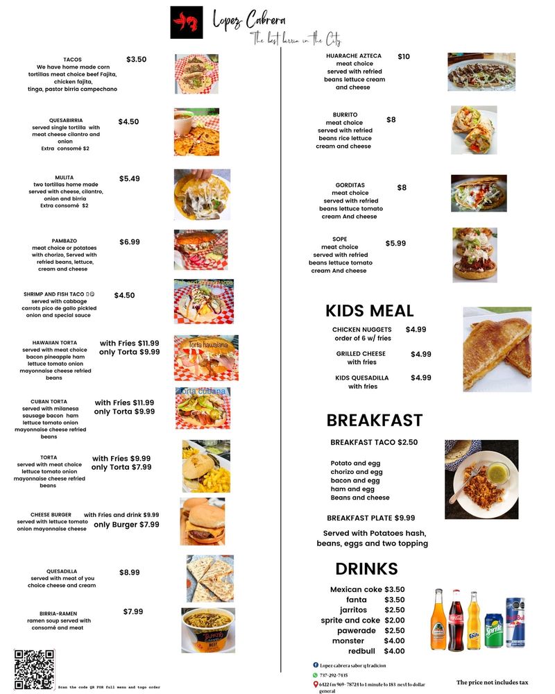 Complement your meal with a Side of Rice or indulge in the luscious Caramel Churros for dessert. With glowing reviews praising every bite, it's clear BIRRIERIA LOPEZ CABRERA #2 is a must-visit for food lovers craving authentic Mexican flavors.